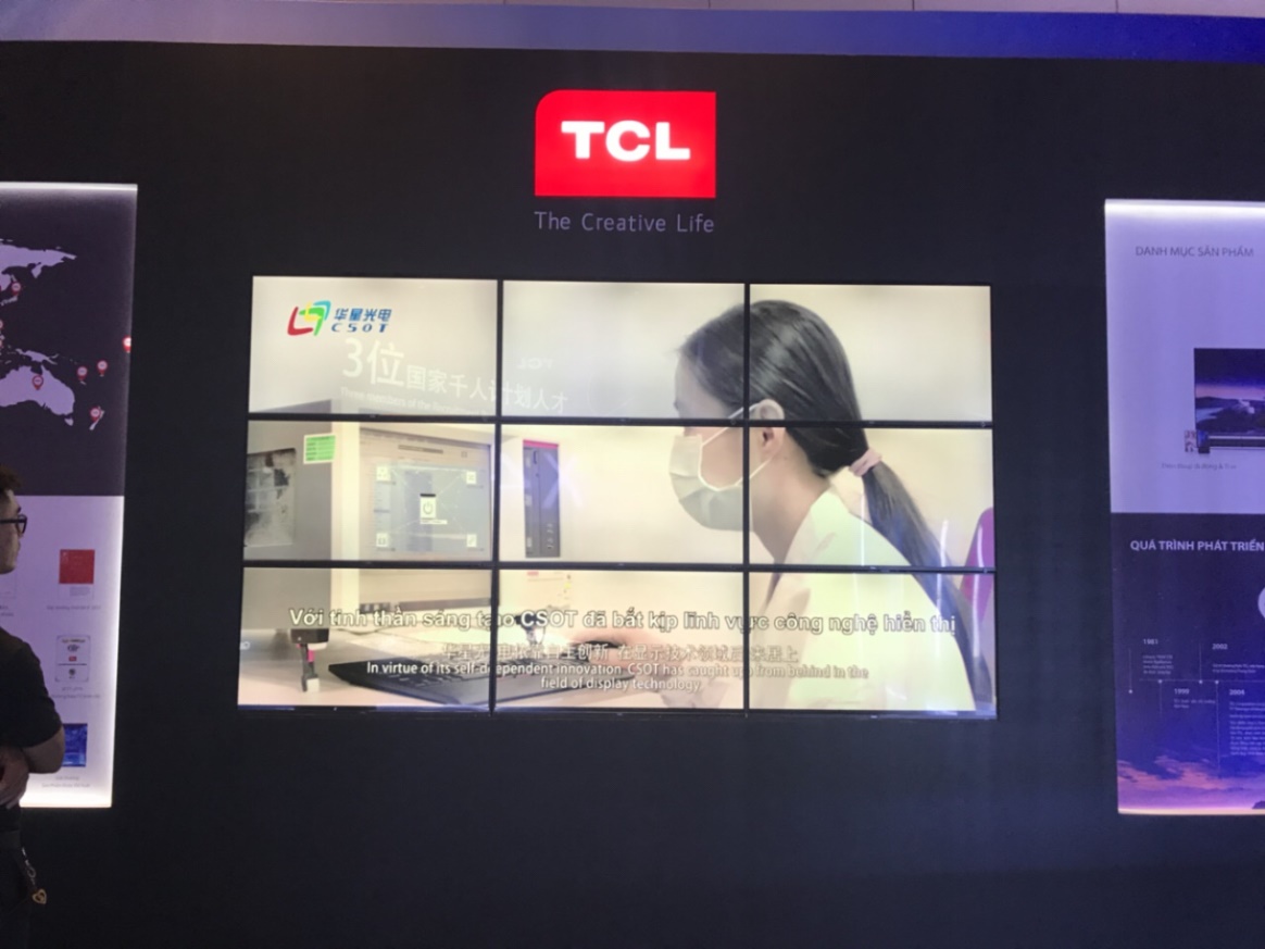 Cụ thể, Hoàng Trần cung cấp cho thuê màn hình ghép/videowall dạng ghép 3x3, song song đó đòi hỏi kỹ thuật khéo léo và phức tạp hơn để ghép video wall 32 màn hình với cấu trúc chữ U. Với màn hình ghép videowall dạng chữ U phần nào đã tôn lên các sản phẩm của TCL và góp phần vào thành công chung của buổi ra mắt lần này.